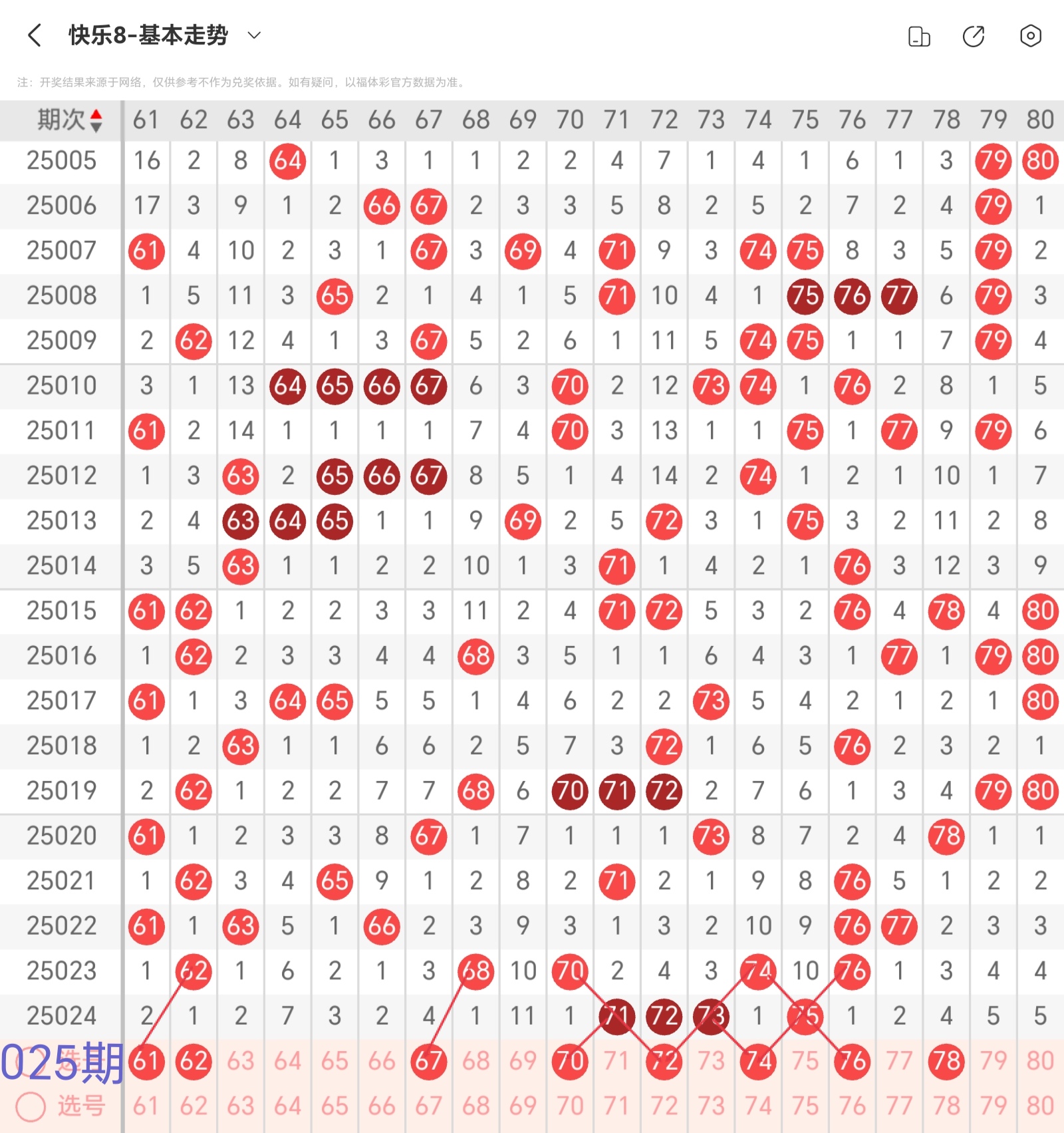 大家好,我是彩虹号作者——幸运姐。欢迎阅读我的文章,本期通过对区间分析和每周走势分析接着和大家分享快乐8的选号思路,大家理性参考!相信自己!