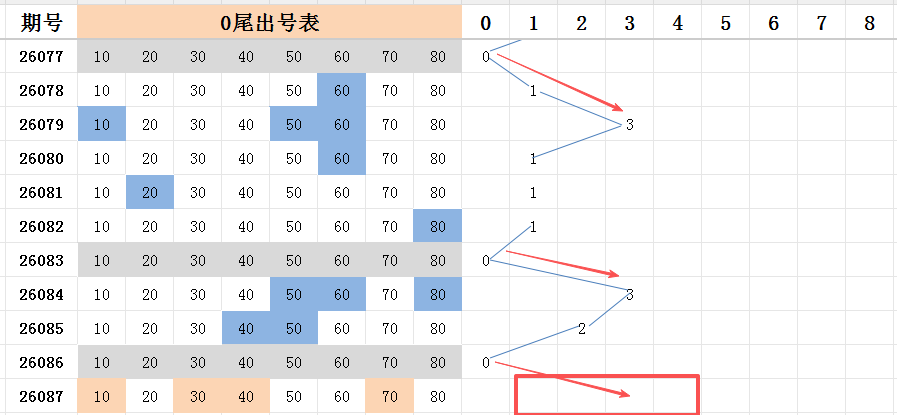 本期看好开出的范围是两码走势至四码走势之间0尾上期开出断尾走势,前半部分的尾号看好号码10、号码30和号码40的开出,后半部分尾号看好号码70的开出。0尾近期又是没有开出四码或五码的期数,近期比较冷,谨慎选择。