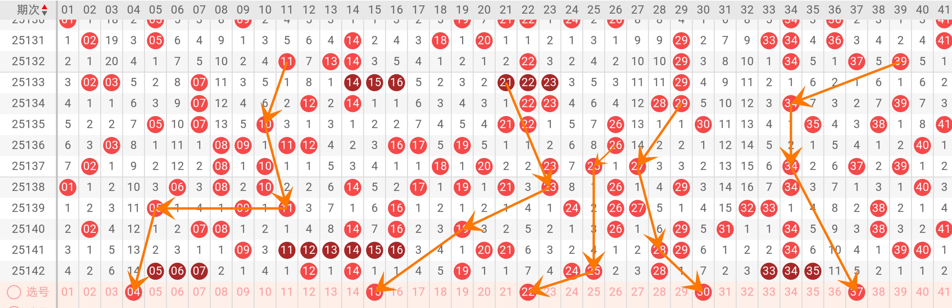 推荐号码:04、15、22、24、30、31、34、37、39、40