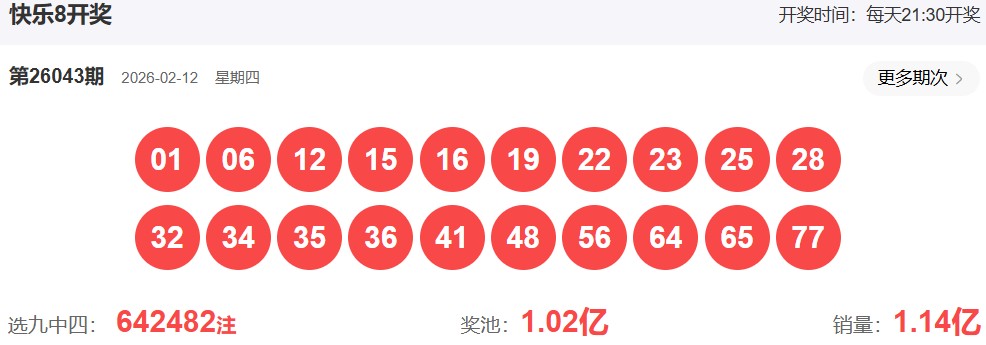 快乐8第2026043期开奖号: