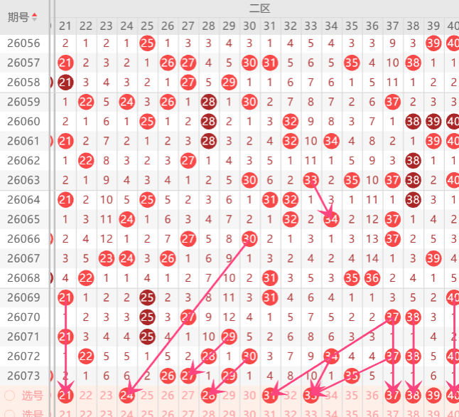 二区间注意打底号21.22.24.28.31.33.34.35.37.38.39中关注3-4码开出机会,