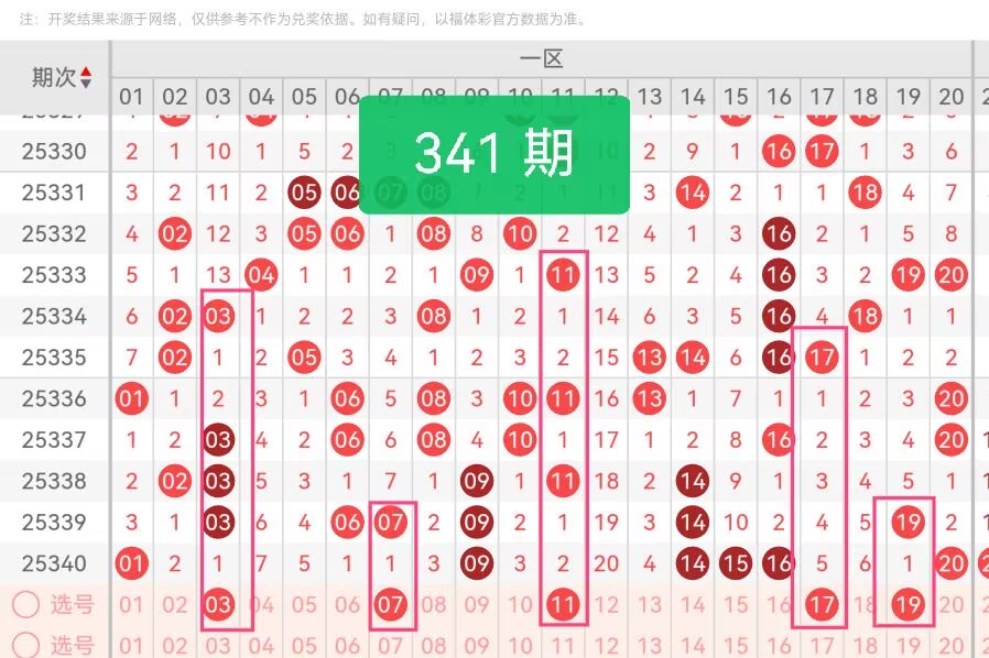上期本区开出6枚号码,集中在01、09-16及20区间,前端02-08、中段17-19存在空白,且尾号1、4、5占优。本期核心思路是填补空白、均衡尾号与奇偶。03作为前端奇数,能衔接上期01,完善前段布局,同时补充稀缺的3尾;07是质数,既填补08-09间的空缺,又丰富数字属性,平衡尾号分布。11处于中段核心位置,可连接10-14区间,避免号码断层,且11尾上期未密集出现,符合均衡逻辑;17和19作为后段奇数,填补16-20的空白,两者间隔合理不扎堆。