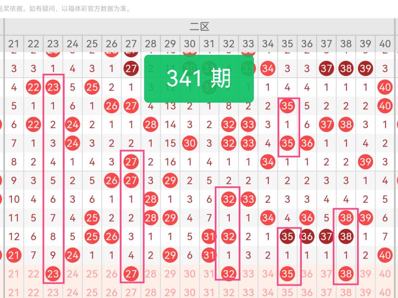 第二区间号码推荐:【23 27 32 35 38】