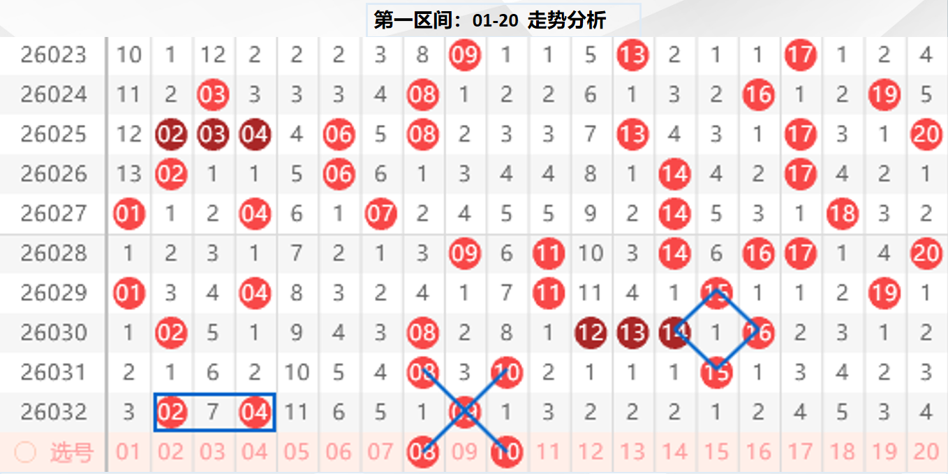 一区分析:【01-20】(走势图标注号码非小黄车大底,请谨慎参考,具体思路将在直播间分享讨论)