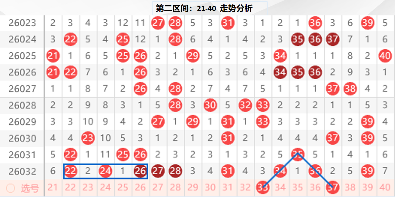 二区分析:【21-40】(走势图标注号码非小黄车大底,请谨慎参考,具体思路将在直播间分享讨论)