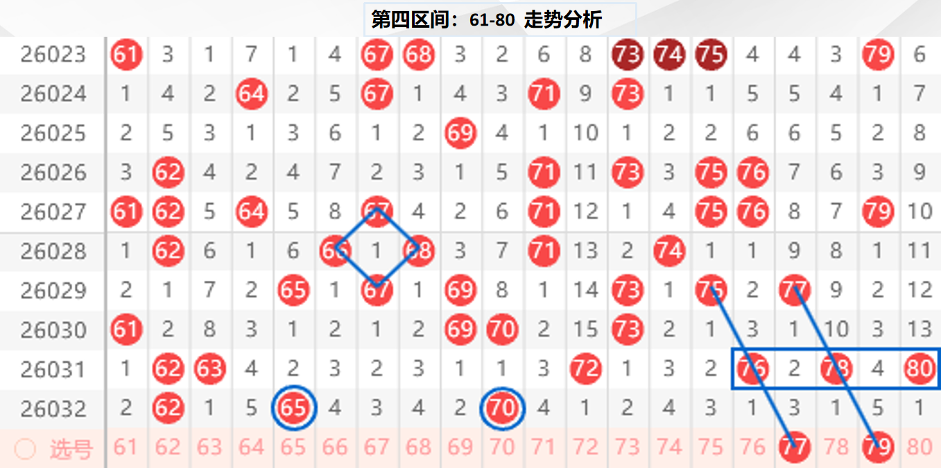 四区分析:【61-80】(走势图标注号码非小黄车大底,请谨慎参考,具体思路将在直播间分享讨论)