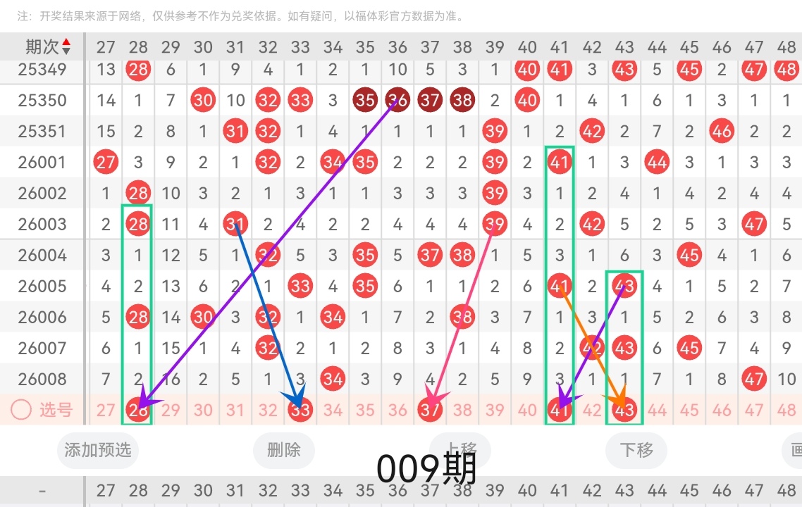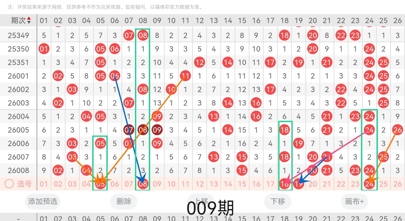 通过以上对上期的简单回顾,下面进入2026009期(下面简称本期)的选号分析:
