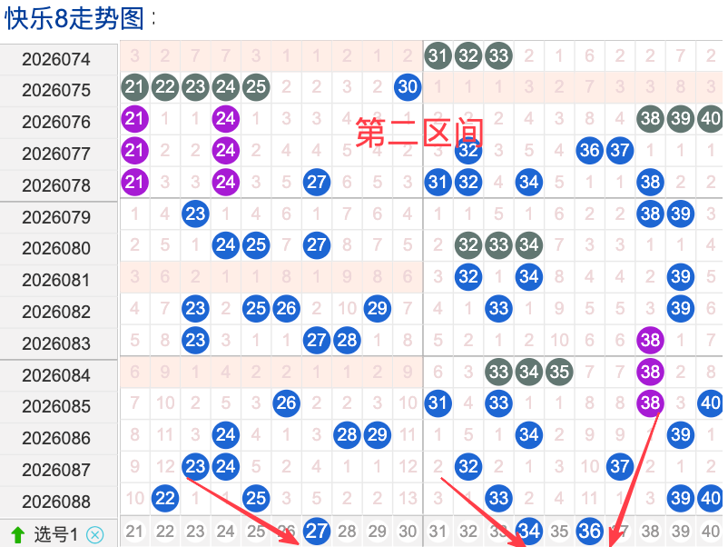 上期二区开出5个奖号(22.25.33.39.40)上期回顾二区开出5个奖号二区间在上期落位同比前期的话呈现了一个递增落位趋势,先来看本期号码27整体活跃度较,在近 30 期里有一定的间歇性出现,不是每期都开,近期整体走势还是很稳定。号码23近期热度较,间隔性整体比较热,说明其在当前阶段活跃度较注意防守。号码34近期活跃度较热有一定的间歇性近期整体走势相对还是很有特别明显的冷热趋势变化,号码4030期内活跃度较有明显的连续出现形态走势,整体表现比较