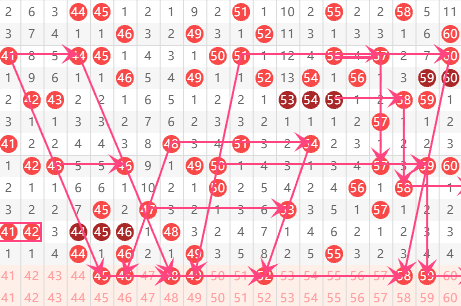 三区分析:【41-60】(走势图标注号码非小黄车大底,请谨慎参考,具体思路