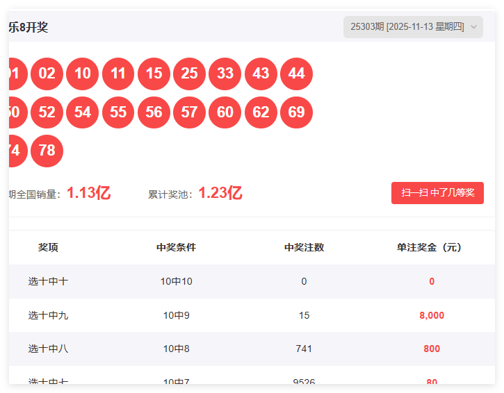 快乐8第304期