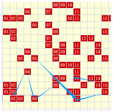 • 第一区:上期开出5个奖号,历史数据显示,该区出现5个奖号后,下期常见开出2-7个号码。本期预计该区可能转冷,重点关注2个号码,参考01、11等。