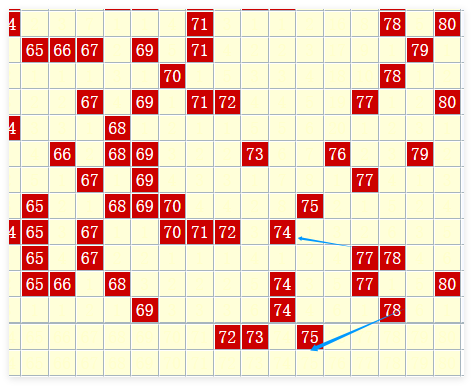 • 第四区:上期开出4个奖号,本期防其转冷,预计开出3个号码,可关注63、71、75等。