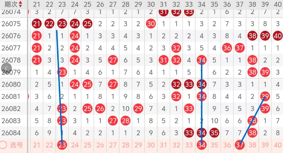 第二区间的走势分析:第二区间上期开出了四个号码球,主要的落号点位在二区间的后半区,走出了两奇两偶的形态走势,上期二区间的前半区没有号码球落下,后半区落下了四个号码球,整个二区间处于走冷的趋势,根据二区间的走势规律,今天的二区间我们主看前半区23的落位,隔期走出了规律性的回补,再看后半区34 37的组合,34走出了对称的走势,37走出了大斜连码的落位,注意23 34的组合,这三个号球建议大家打个三胆拖,或者打个三码复二比较稳妥,参考为主!