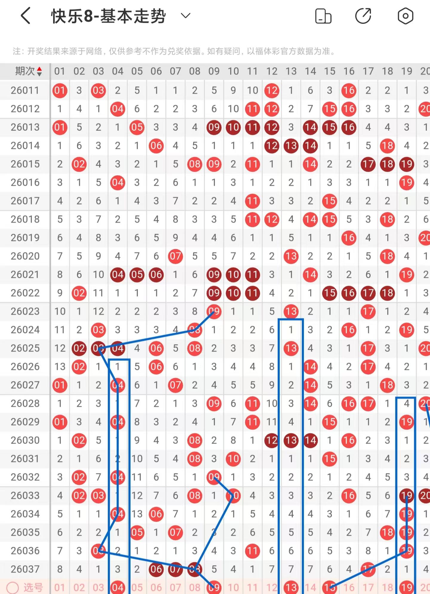 快乐八2026038期出号分析,上期区间分析选二复式中