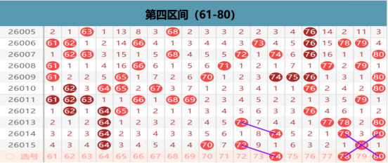 本区上期开出4码的区间布局,那么在本期我们优先考虑的就是70 72的位置上的出号的可能性,在这个位置上我们做择一的出号的可能。切记这个位置上我们就是选择一方的回补作为重点出号的位置,在空位上我们关注的就是小周期的出号重点,62 66 68 73 77的出号点位,在这个位置上我们是做择一出号的选择,那么其他位置的出号就不是我们考虑的重点位置了。