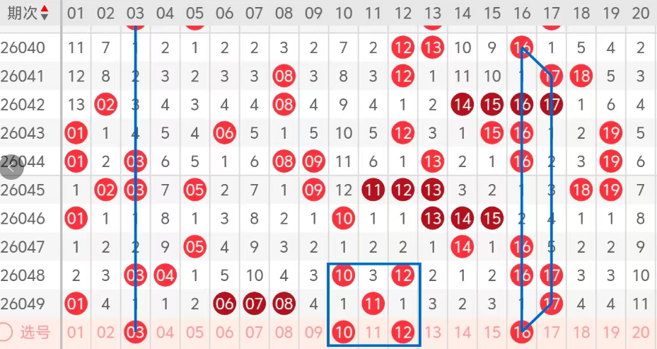 第一区间的走势分析:第一区间上期开出了六个号码球,主要的落号点位在一区间的前半区,走出了四奇两偶的形态走势,上期一区间的前半区落下了四个号码球,后半区落下了两个号码球,整个一区间处于走热的趋势,根据一区间的走势规律,今天的一区间我们主看前半区03这个号码球的落位,走出了隔期有规律的回补,再看中间位置对称号码10 12的回补,今天落下的机会很大,最后关注16这个号码球的落位,走出了对称的走势,也是热码的回补,这四个号球建议大家打四胆拖个,或者打个四码复三比较稳妥,参考为主!