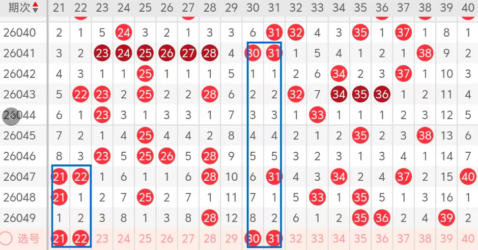 第二区间的走势分析:第二区间上期开出了四个号码球,主要的落号点位在二区间的后半区,走出了两奇两偶的形态走势,上期二区间的前半区落下了一个号码球,后半区落下了三个号码球,整个二区间处于走冷的趋势,根据二区间的走势规律,今天的二区间我们主看前半区龙头位置21 22姊妹对号码的落位,落下一码的机会很大,再看中间位置30 31姊妹对号码的落位,落下一码的机会还是有的,也是冷码的回补,特别是31走出了斜连码的走势,这四 个号球建议大家打个四码复三,或者打个四码复二比较稳妥,参考为主!