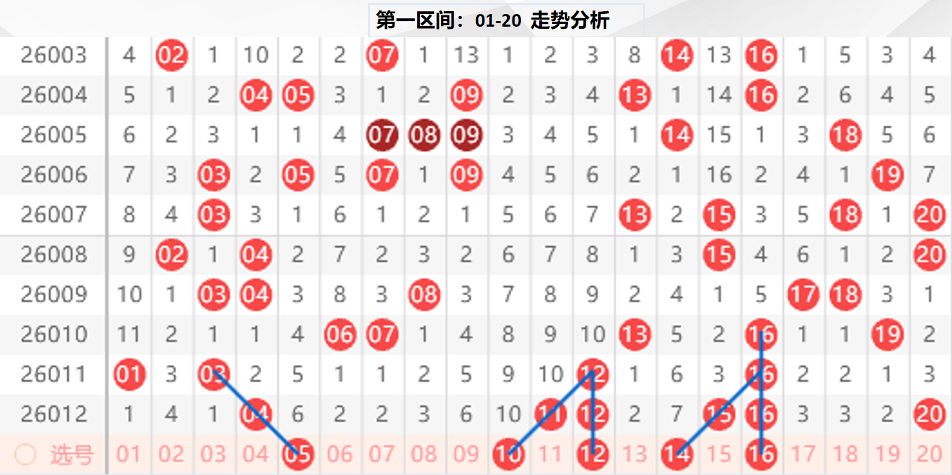 一区分析:【01-20】(走势图标注号码非小黄车大底,请谨慎参考,具体思路将在直播间分享讨论)