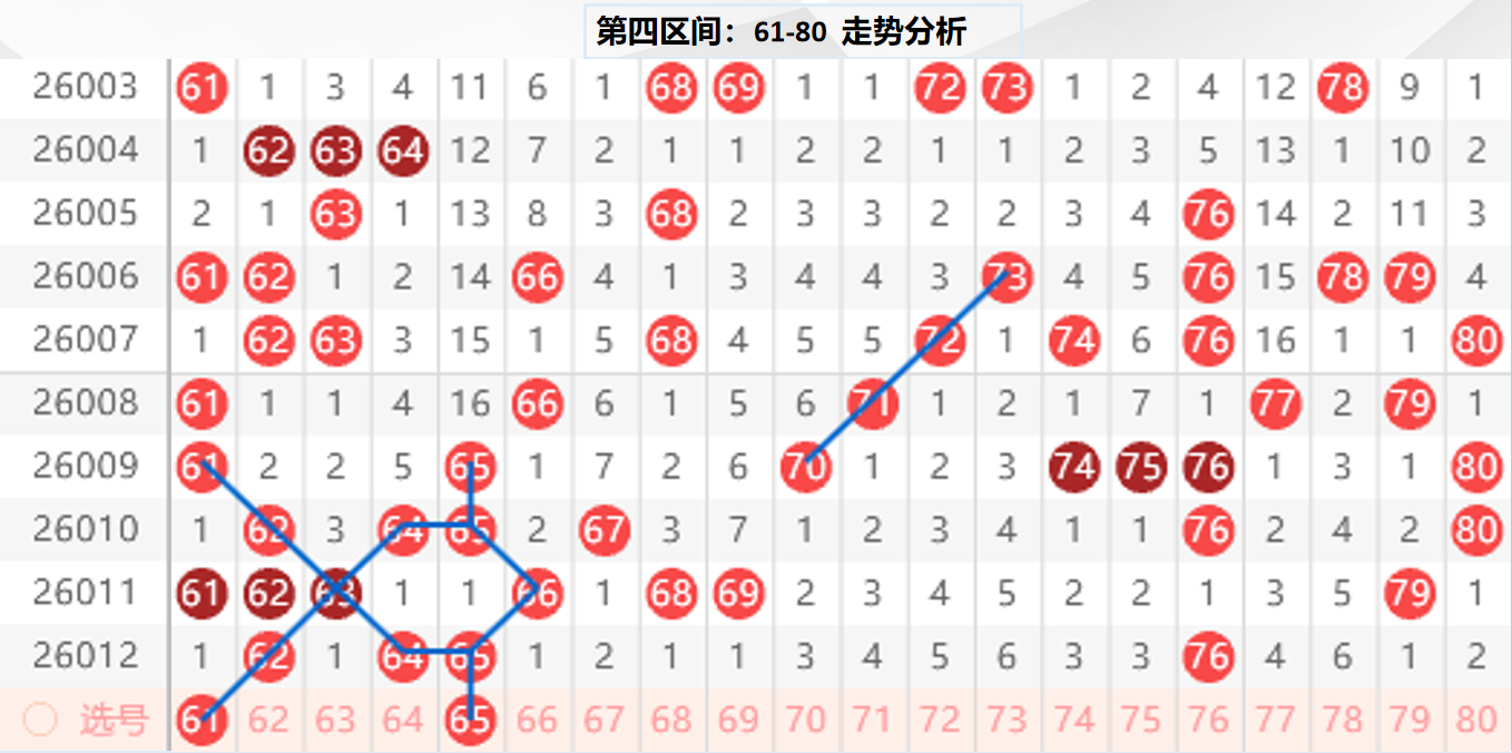 四区分析:【61-80】(走势图标注号码非小黄车大底,请谨慎参考,具体思路将在直播间分享讨论)