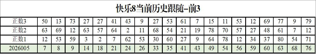 我感觉选热的同时,还要注意防冷条件开出,可以直接选取每个号码跟随出次前三的号码,也可以考虑把出次最后的三个数字加进去,不过这样可能号码太多,可以尝试。图上也能看出单独号码跟随的情况,我就不一一统计每个号码的出次了,我这里考虑提高概率,取每个号码历史跟随的前三号码和后三号码,根据2026005期的号码,我关注正数3和倒数3的号码号码为: