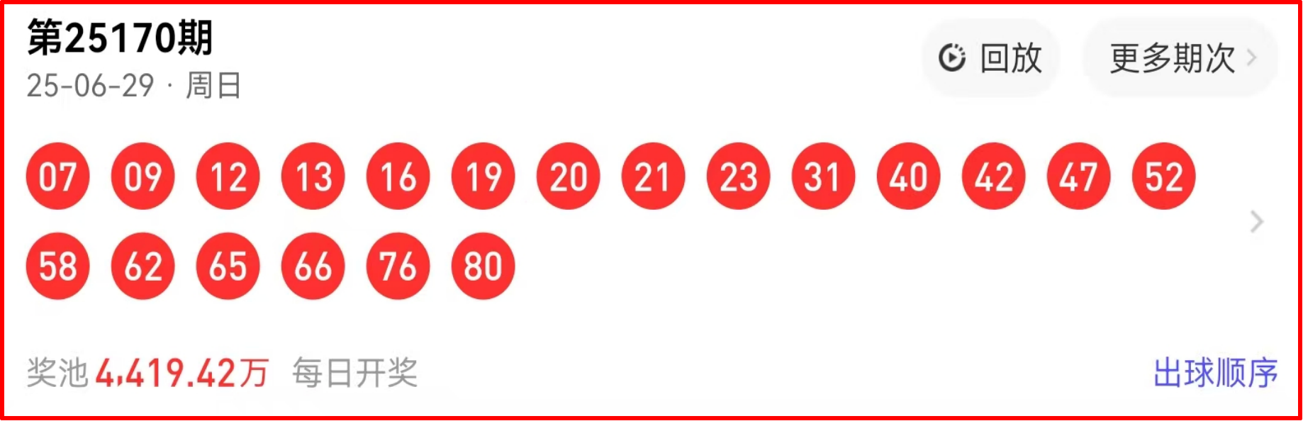 四区间给到主做号码球:62 68 69 71 73 80;防守号码球:63 67 70 72 74 75;