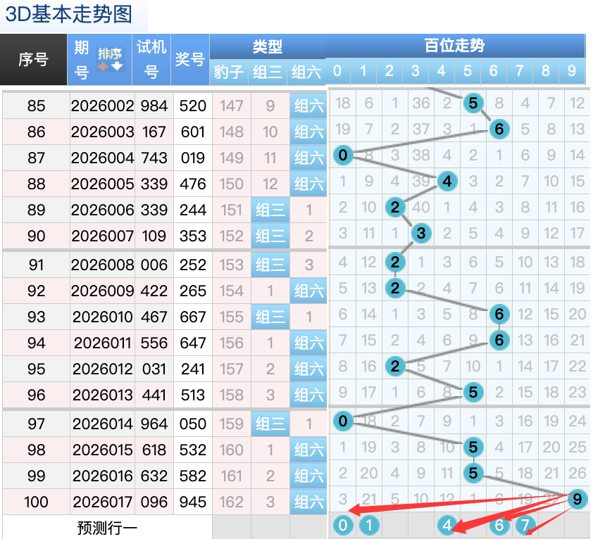 3D上期百位开出的9球,这个奖号是一个冷码回补落位趋势也是一个比较好的符合百位上的落位点,先来看0号球这里还是有机会继续走出一个小号拉拽大号的趋势的回补号码,还有一个就是4号球和6号球这里的两个冷码的落位形态的概率在这里的机会还是很好的要注意防守,然后7号球这里要注意是一个2跨回补落位趋势要注意防守9号球在百位上要注意可能有机会走重码的落位注意防守 。