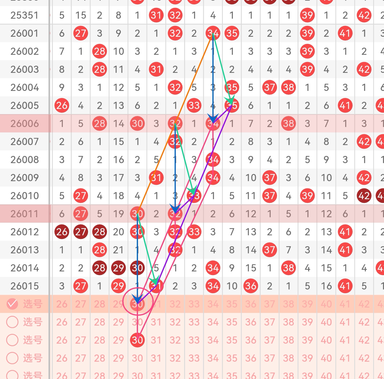 二区间推荐主做号码:21 25 30 32 37 39 40 防守号码:26 27 28 34;