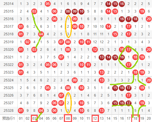 08:   本人认为08是在一区前区较热的号,15期内开出4次,一次两连重号,可做备选号码。