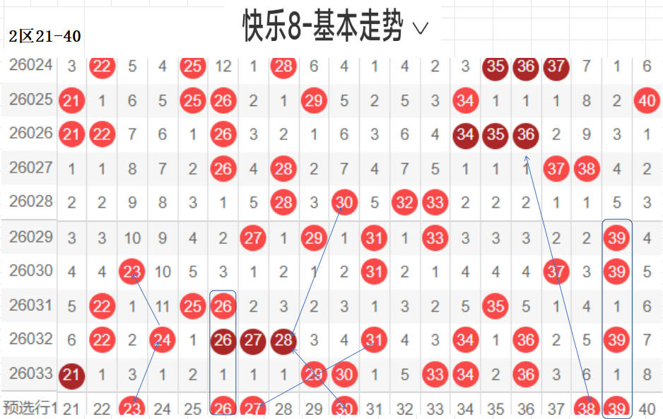 二区(21-40):遗漏5期以下有18,021 29 30 33 34 36  6,数据所示,冷码平均,选择条件增多了.上期开出了6个号码,出码比较分散.这期布防相应增加,重码按比例落这区较少,先给出关联码38,这个区间间接走势,温区,21-30区间上期开了3个,依旧不是重点选号区间,31-40区间开出3个,本期关注热码的回补,间隔小遗漏值最佳,3字头转热,这个小区热码注意回调,可以做关联码的布局,注重温冷码的回补.