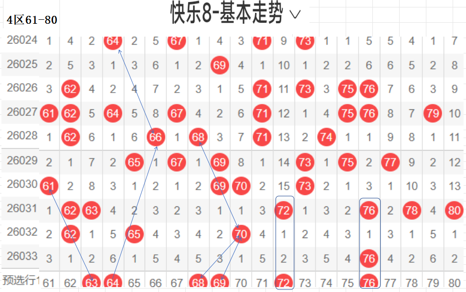 四区:(61-80):遗漏5(5)以下有18,076  1,平均温开方式,上期开出3,区间回暖,后区可防,区间从以往数据来看,重码很强,一枝独秀的存在,近期有回补走热的趋势,区间回暖,本区间后区可防,与一区相比,也是温区.,对称下落,隔期回补码,可以防,这区对呈对称三角关系的胆码,斜三连有走势的胆码,联动落位码,都有各自的走向落位关系,根据走势选择一种方式选码.