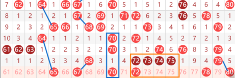 本期分析号码为:02、10、14、17、18、26、27、28、33、34、38、42、49、52、57、65、67、70、72、78、80。