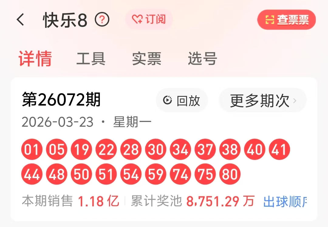 26072期 开出了01-05-19-22-28-30-34-37-38-40-41-44-48-50-51-54-59-74-75-80