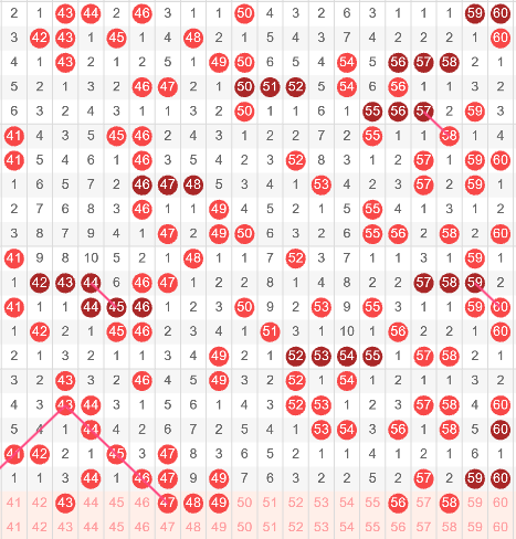 第三区间首先看好一码43号码球的三斜连有机会,然后看47的三重吗有机会下落,防守48的回补,以及49的重码这里还是一样三选一或者二有机会下落 ,尾部看56  58二选一出号有机会,该区间可推荐的选二搭配组合有43   47或者48  58,第三区间胆码主看43  47  48  58
