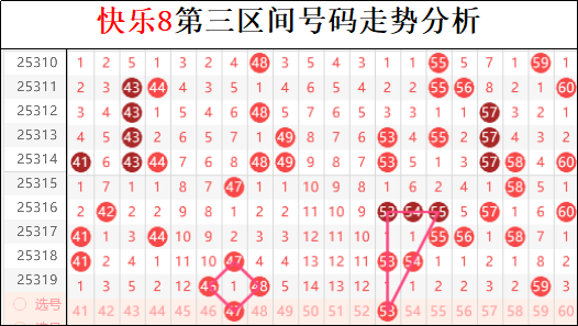 三区目前的走势极冷,尤其是区间上一期五码为大冷走势,好在上一期三区释放了一个冷码出来,也就证明区间冷码开始松动,本期将迎来超级大反转走势,不排除冷码相继而动,而绝非倾巢而出。本期重点关注45-48段温码率先突围,结合遗漏值逐步走高后的修正需求,46号具备隔期反打动能。49号作为区间桥头堡有望承接热势,形成二次联动。冷号经历长期盘整,或迎来解冻契机,尤其50-51-52号遗漏已达最高14期,逼近理论极值。建议以45/46为前锋试探,联动49号强化攻势,辅以42号防冷补缺。