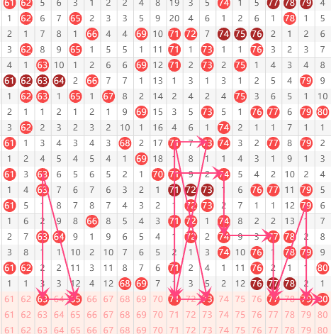 四区分析:【61-80】(走势图标注号码非小黄车大底,请谨慎参考,具体思路将在直播间分享讨论)