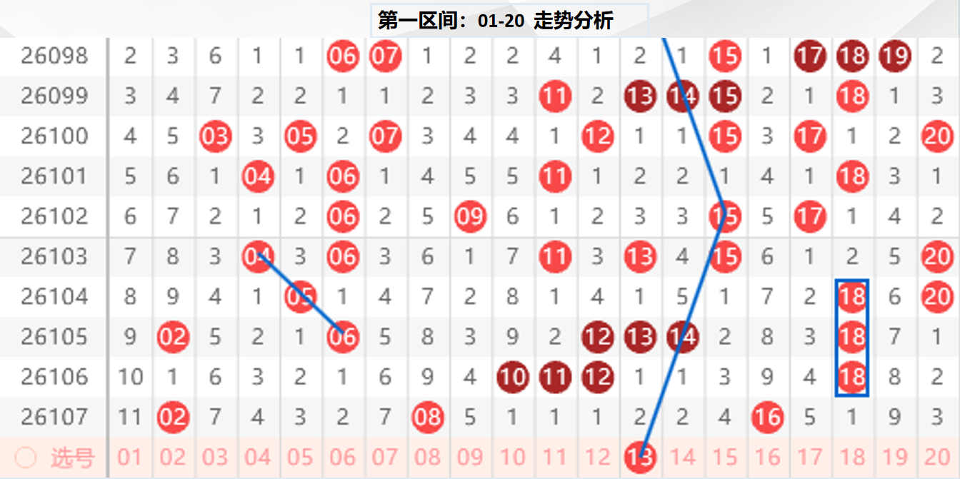 一区分析:【01-20】(走势图标注号码非小黄车大底,请谨慎参考,具体思路将在直播间分享讨论)