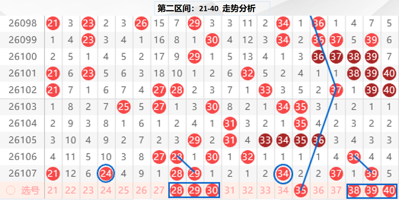 二区分析:【21-40】(走势图标注号码非小黄车大底,请谨慎参考,具体思路将在直播间分享讨论)