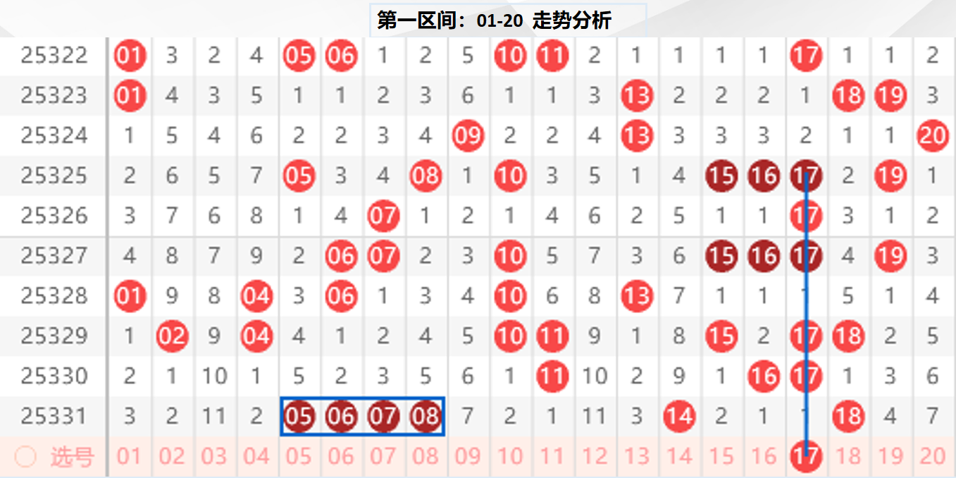 一区分析:【01-20】(走势图标注号码非小黄车大底,请谨慎参考,具体思路将在直播间分享讨论)