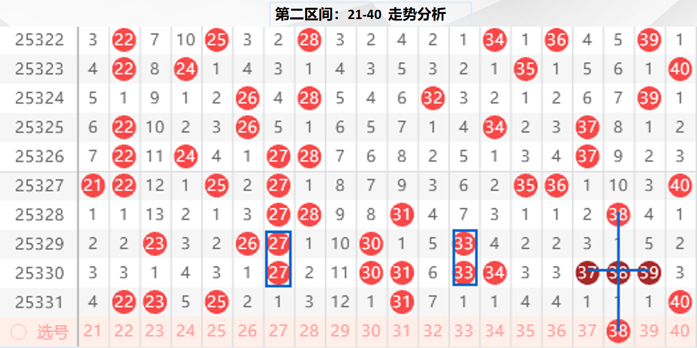 二区分析:【21-40】(走势图标注号码非小黄车大底,请谨慎参考,具体思路将在直播间分享讨论)