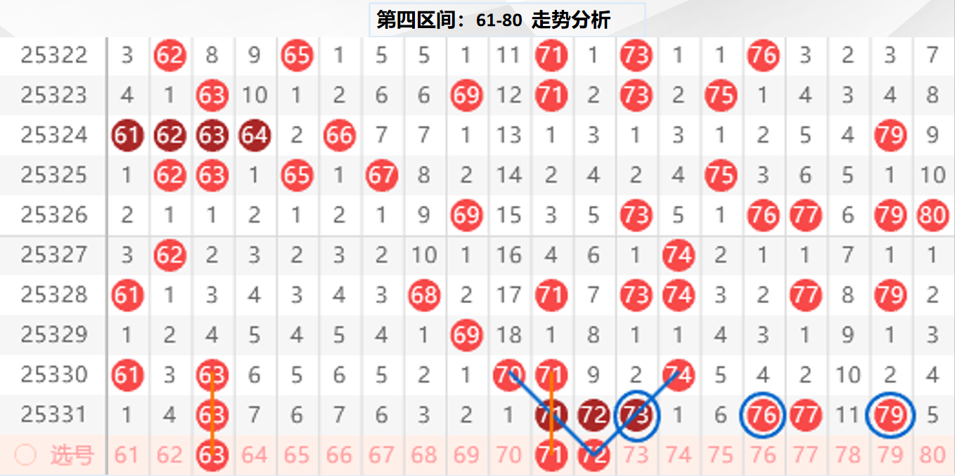 四区分析:【61-80】(走势图标注号码非小黄车大底,请谨慎参考,具体思路将在直播间分享讨论)