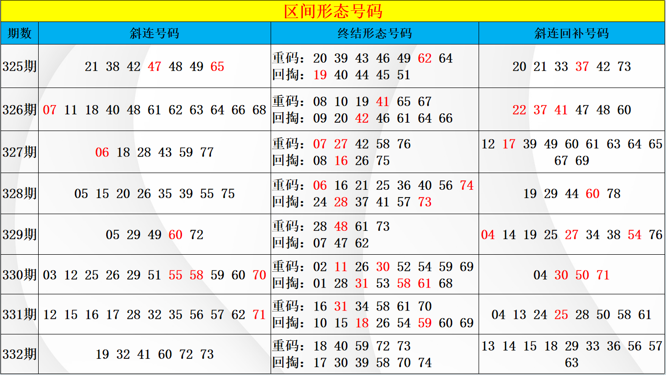 上期四区的继续回补,区间多码出号,前区在空位的小周期对应点位上继续保持开号的重点,后区在空位和同形态下方开出回补号码。以区间在当前周期上的出号模式判断重点,首先形态号码中还是要重点考虑在73 76 79的出号位置,除了上一次断头没有回补之外,其余在各个区间上都是有号码开出,重码和分边中也都是保持着相对的出号重点,本期形态中也要重点考虑三码下方的开号机会,分边中优先侧重温冷周期上的接力出号,75 78 80三码中择一选择。区间在空位中的回补重点主要还是以小周期上的接力位置侧重,号码中在61 68 69的三码位置上考虑重点,接力周期出号的机会上还是非常大的,关注择一的布局选择。