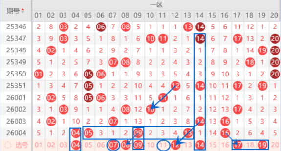 下图为01-20号数字区间走势分析图: