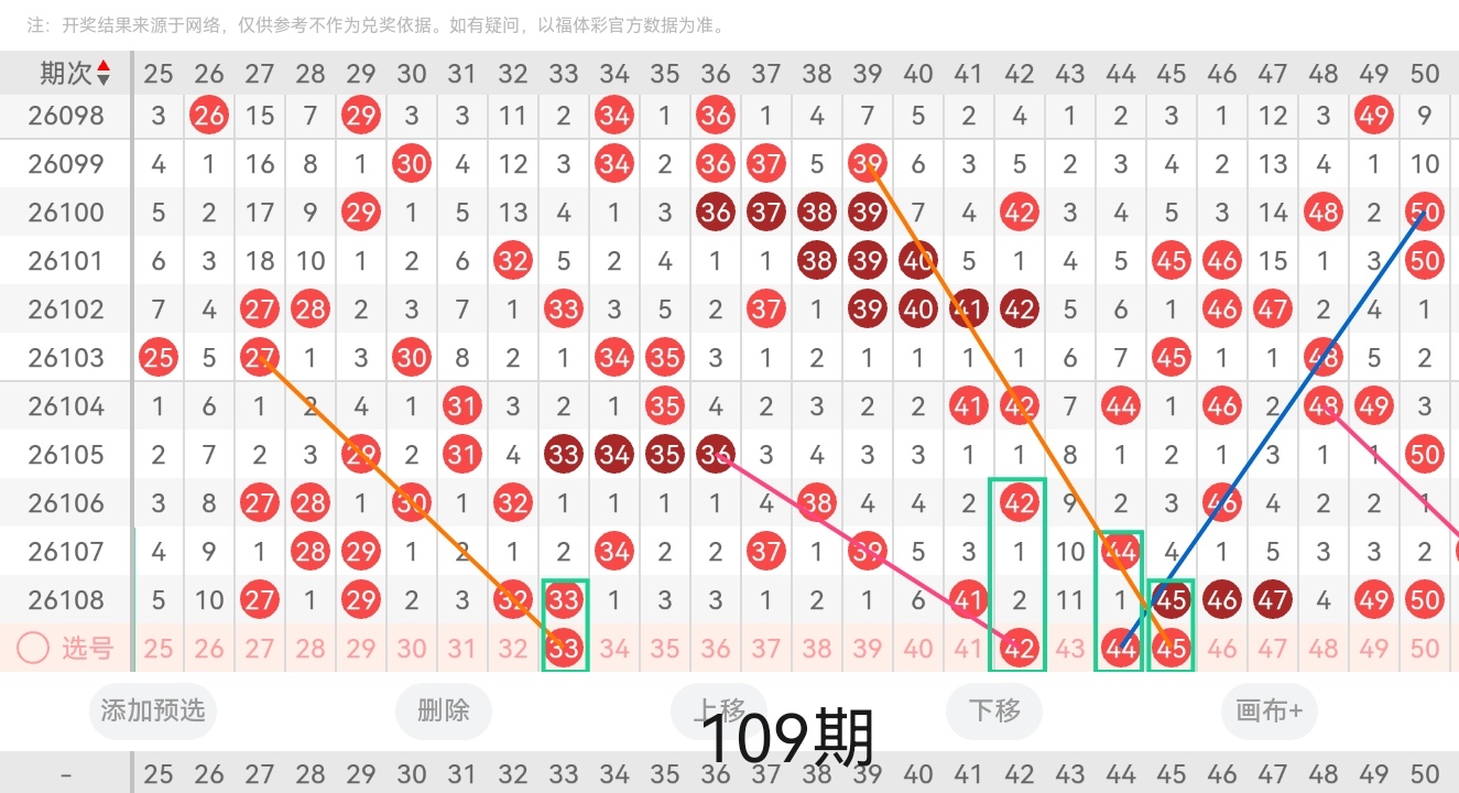 通过以上对上期的简单回顾,下面进入2026109期(下面简称本期)的选号分析: