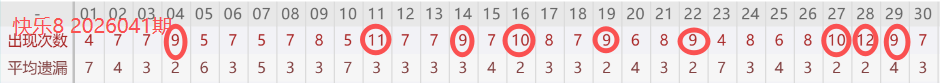 - 热号(保底核心):近30期内出现≥9次的号码(如高频号"04、11"在30期内出现≥10次)