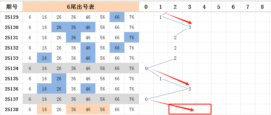 六尾上期未开出号码。