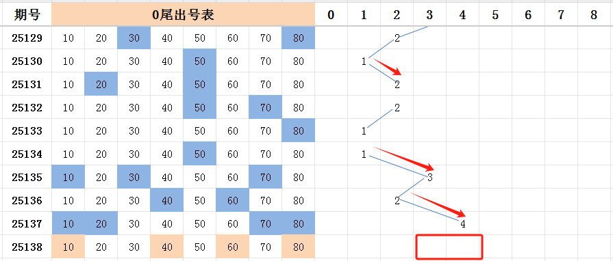 本期看好号码开出的范围是两码走势至四码走势之间。上期看好的后半部分尾号,开出了11个号码。其中0尾开出四码走势,8尾开出三码走势。目前已经遗漏十多期未开多码尾号了,应该在近期会开出。继续看好后半部分的尾号。