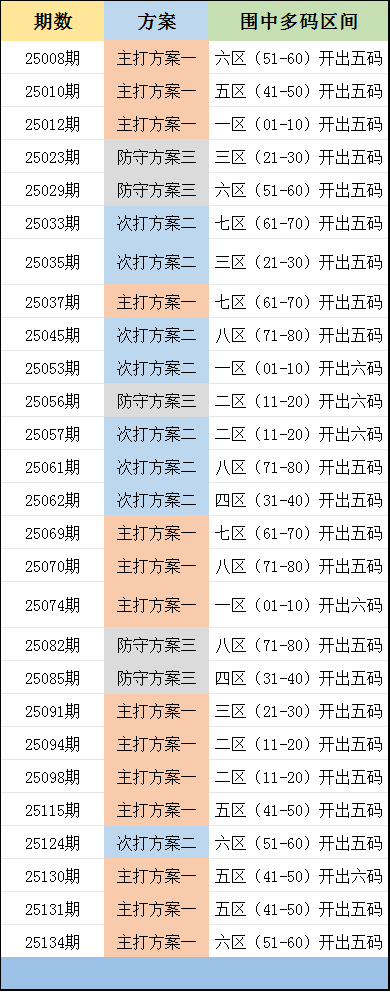 当主选的区间开出六码或七码的时候,争取再次冲击一等奖!
