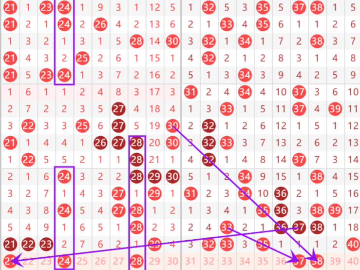 上期三区号码开出21 22 23 29 32 33 35 40 八个号码,三区间整体热度上升,本期三区间热度下滑,预计开出号码六个左右,三区间本期重点号码推荐,重号重点推荐21,邻号重点推荐关注24 28,孤号重点推荐关注37 38