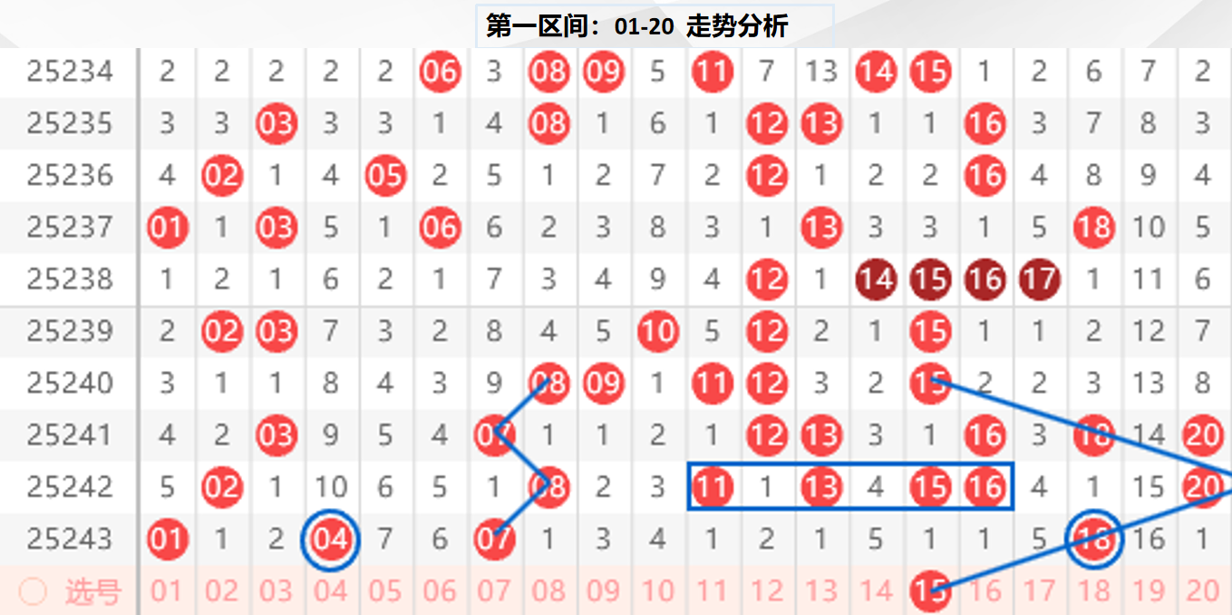 一区分析:【01-20】(走势图标注号码非小黄车大底,请谨慎参考,具体思路将在直播间分享讨论)