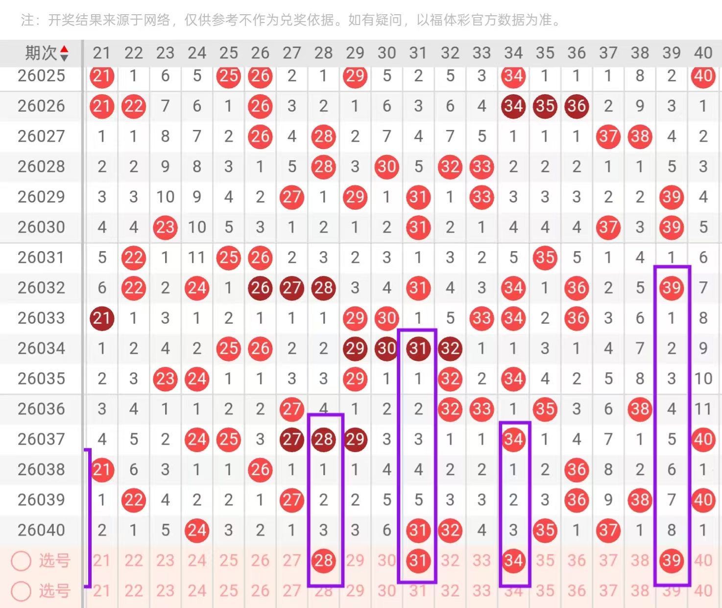 二区21-40:二区间上一期持续走热,回补了5个号码的下落,从近期二区间号码下落点位来看,一直在持续回补大遗漏和空缺位置,今天我们要重点关注的是二区间对子下面的一个回补点位,在二头,首先我们要重点关注的是22-24和28-29的一个回补点位,今天这里可用22-28和23-29的一个搭配回补,回到三头位置,今天这里值得我们重点关注的是31-37同开重码的一个下落点位,和梅花形态34-38的一个回补点位,今天这里可用31-34和3437的一个搭配下落,尾部位置值得我们重点关注的是38-39开出对子下落的可能。